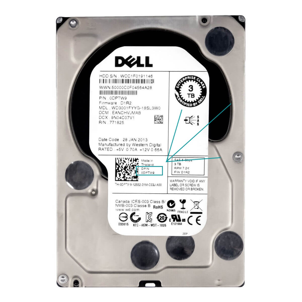 Dell-Teilenummer auf Festplatten