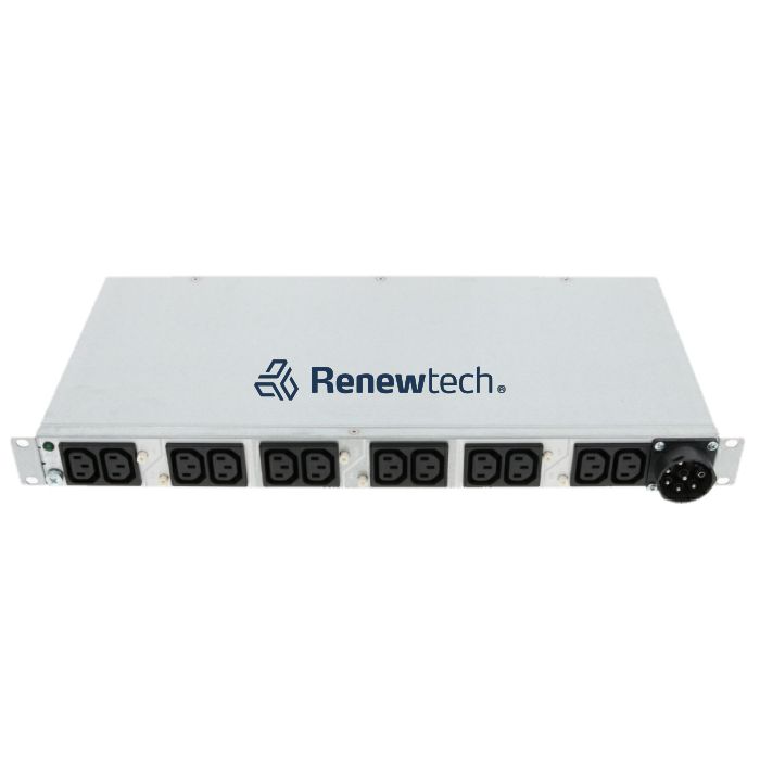Die Stromverteilungseinheit ist so konzipiert, dass sie eine maximale Stromstärke von 24 Ampere unterstützt, während sie pro Phase einen Eingangsstrom von bis zu 10 Ampere bereitstellt. Diese technischen Spezifikationen gewährleisten eine stabile und effiziente Energieverteilung, die den hohen Anforderungen moderner Rechenzentren gerecht wird. Die Farbgebung in Schwarz und Weiß fügt sich dezent in diverse Rack-Umgebungen ein und trägt zur professionellen Ästhetik bei.